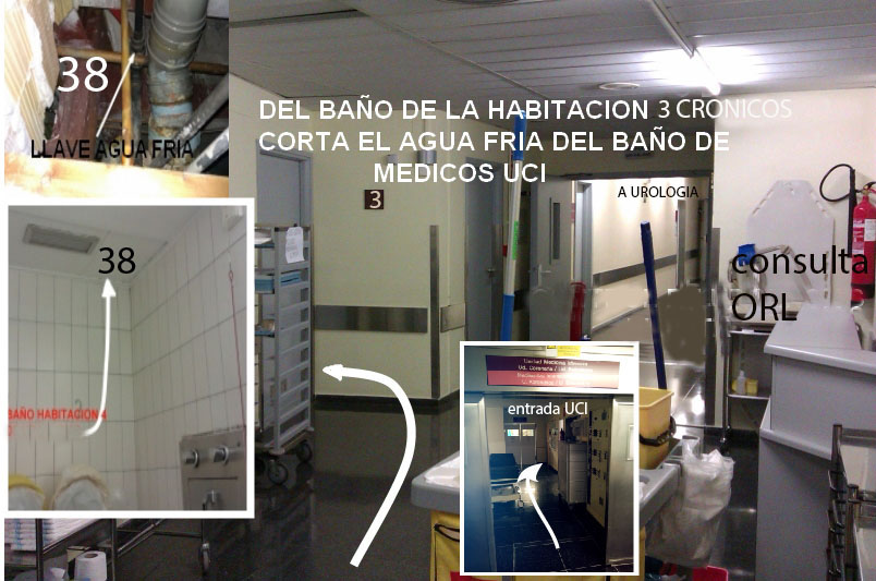 Desde la habitacion nº3 de cronicos, en el baño,se corta el agua fria del baño privado de medicos de la antigua UCI.