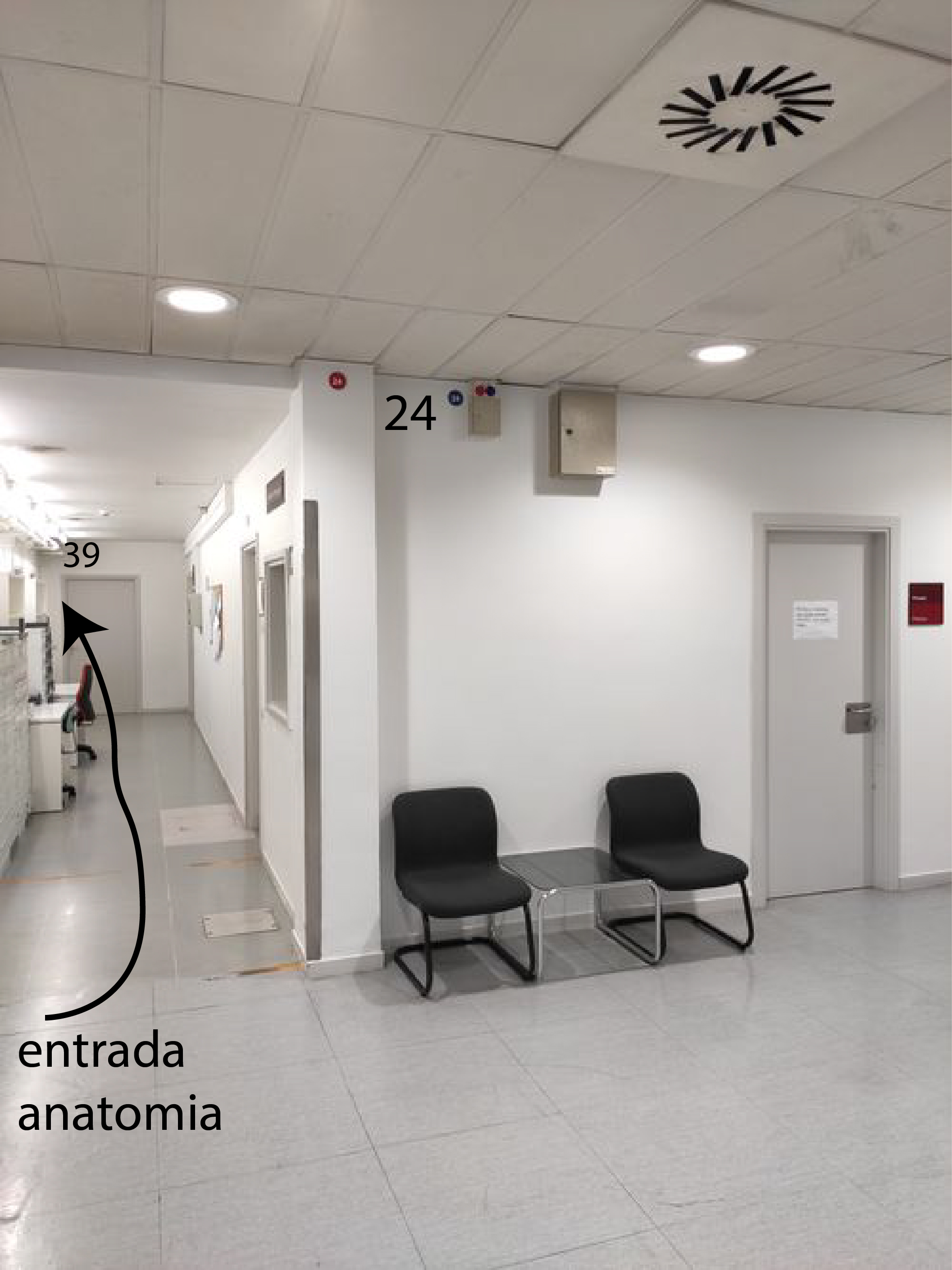 Desde la entrada a anatomia, a la izquiera hay un baño privado, en el techo esta la llave de agua fria y caliente que corta el baño intermedio de Urologia