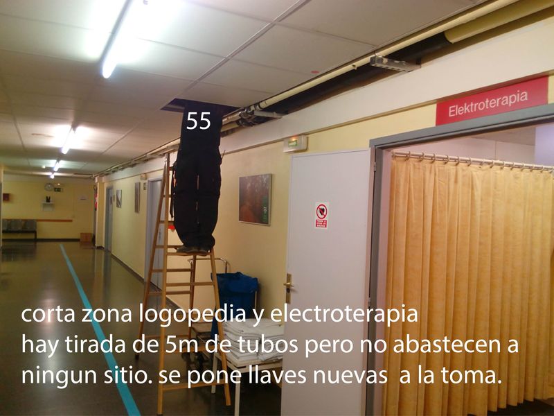 llaves nuevas a la salida toma, antes eran tubos de gran tirada que no iban a ningun sitio.Zona electroterapia y logopedia