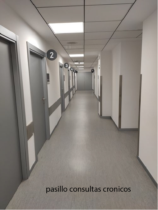 Desde la misma sala de hospital de dia 1 corta todos las salas, aseos cronicos y sala hospital de dia y cirugia