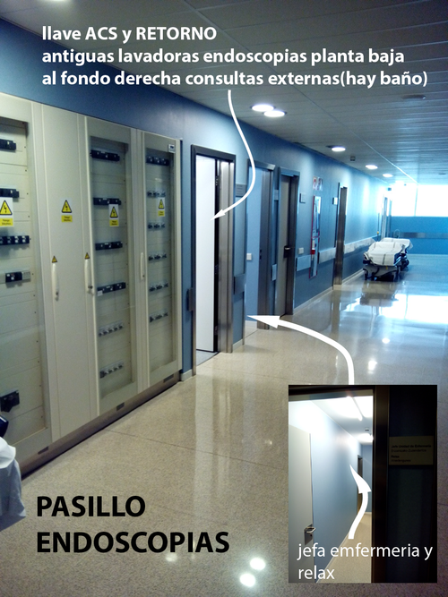 Desde el despacho nº2 de endoscopias,enfrente esta la puerta que va hacia electromedicina y esterilización, se corta TODO ENDOSCOPIAS