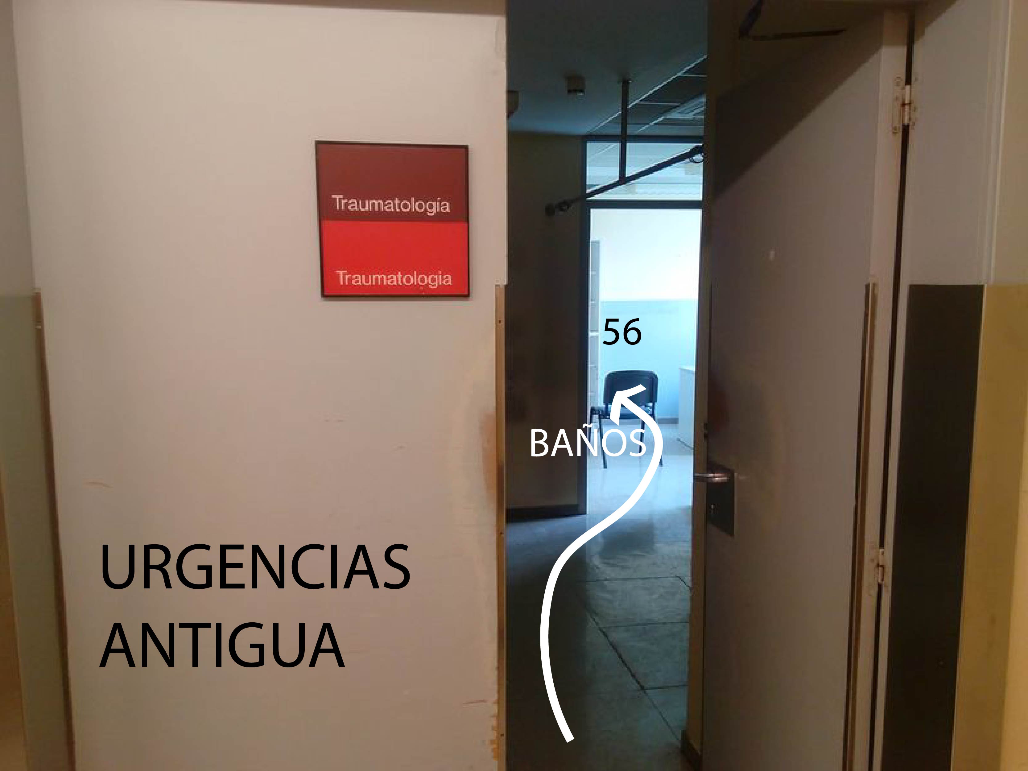 llave 56, corte de agua caliente de consulta antigua trauma de urgencias,tambien el box nº 7 de boxes trauma y los baños y duchas de antigua hematologia o banco sangre.(montante MU12)